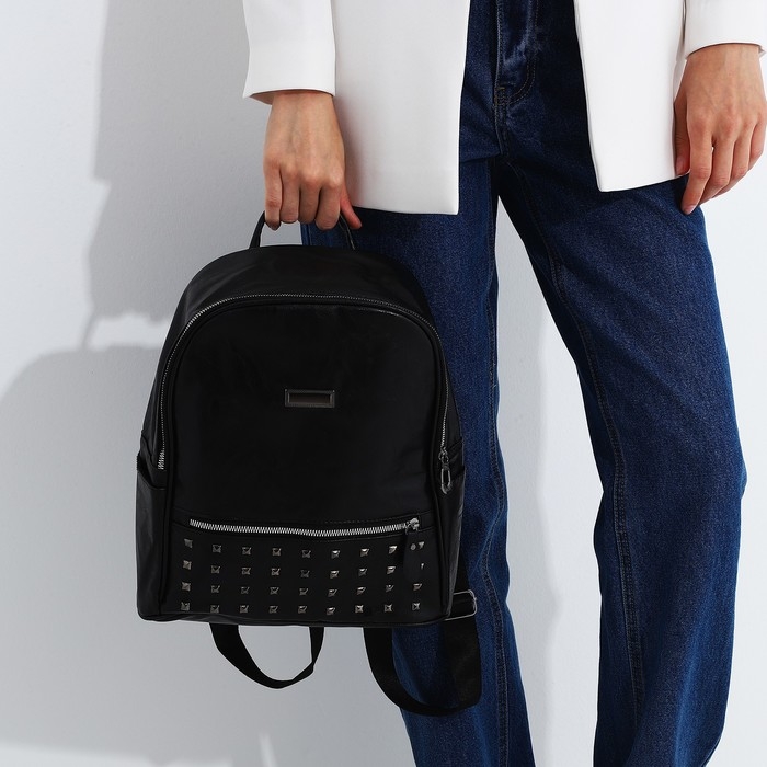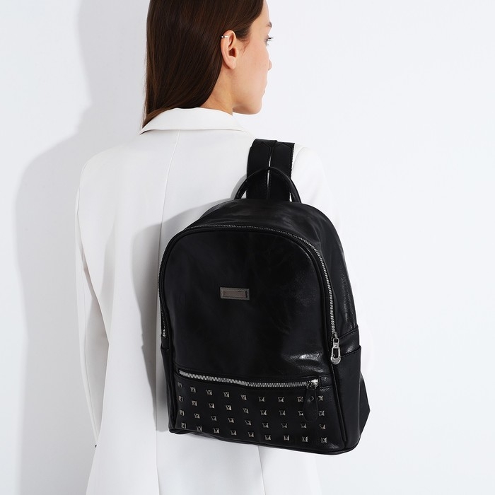 Рюкзак женский из искусственной кожи на молнии, 1 карман, цвет чёрный