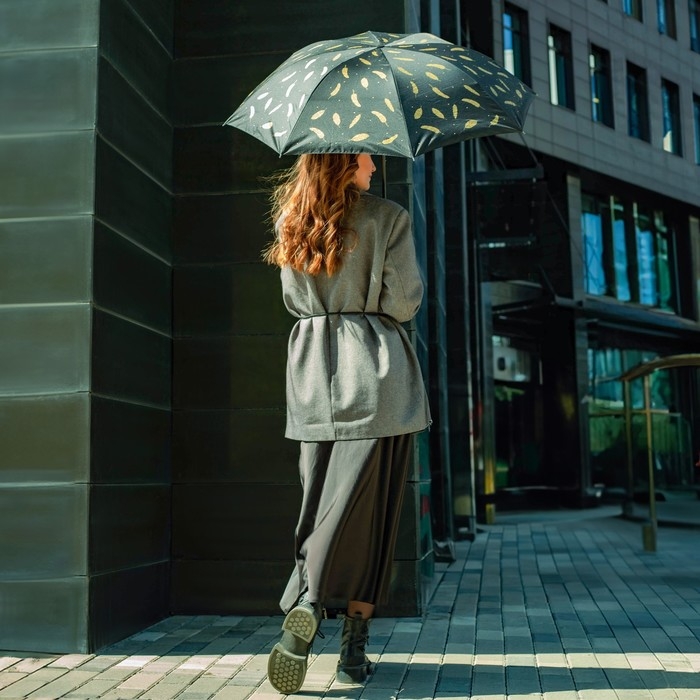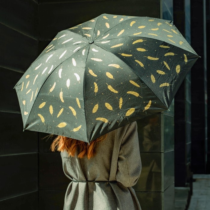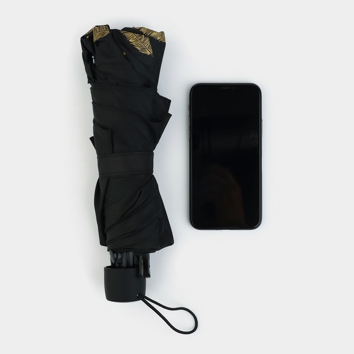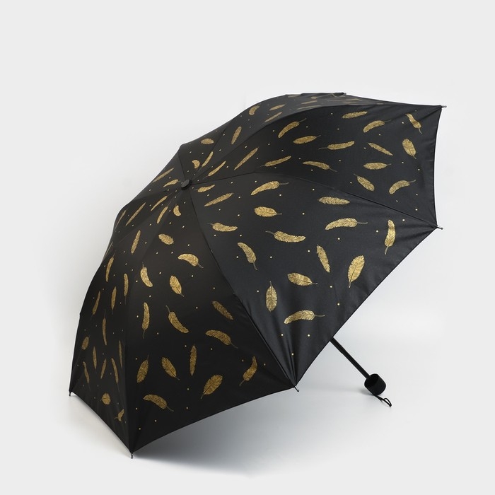 Зонт женский механический «Золотые перья», 8 спиц, d=95, цвет чёрный