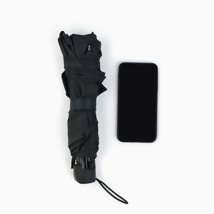 Зонт полуавтоматический «Однотонный», 3 сложения, 8 спиц, R = 49/55 см, D = 110 см, цвет чёрный
