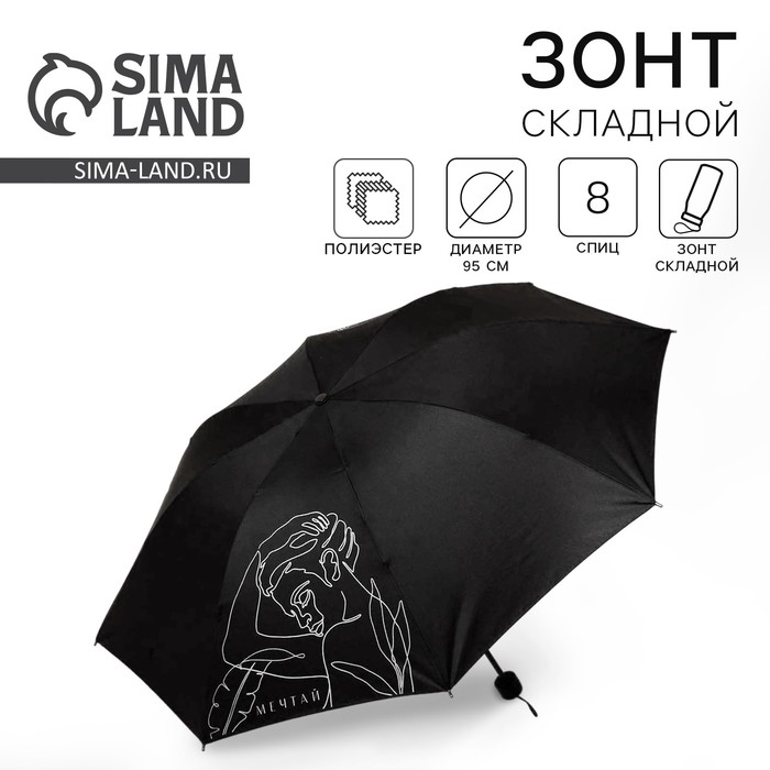 Зонт женский механический «Мечтай!", 8 спиц, d=95, цвет чёрный