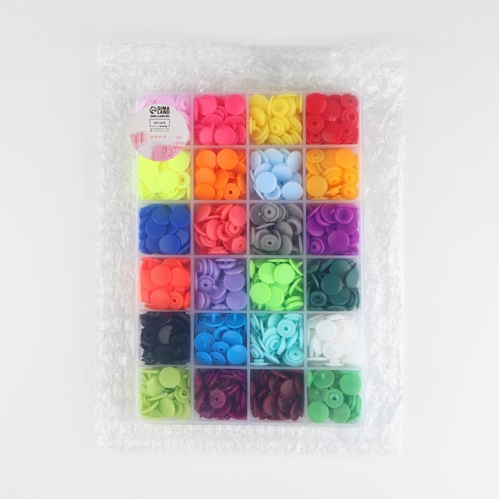 В наборе пластиковых кнопок: 24 разных цвета по 10 штук. В наборе разноцветные кнопки, не все варианты могут быть представлены на фото.