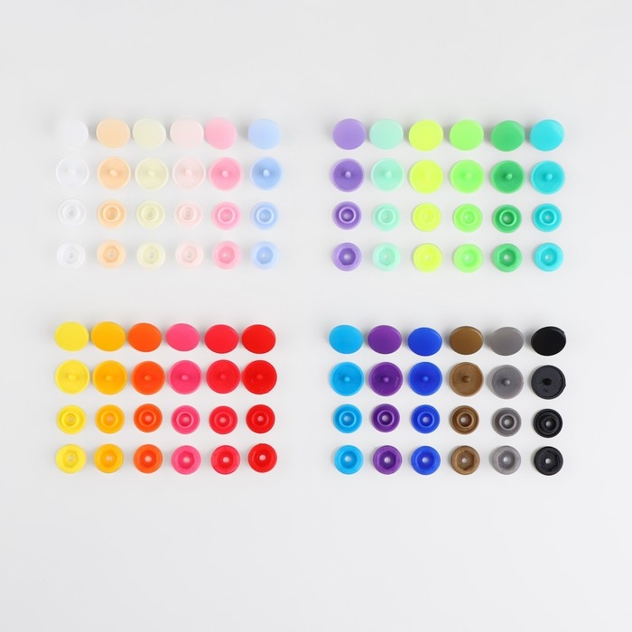 В наборе пластиковых кнопок: 24 разных цвета по 15 штук. В наборе разноцветные кнопки, не все варианты могут быть представлены на фото.