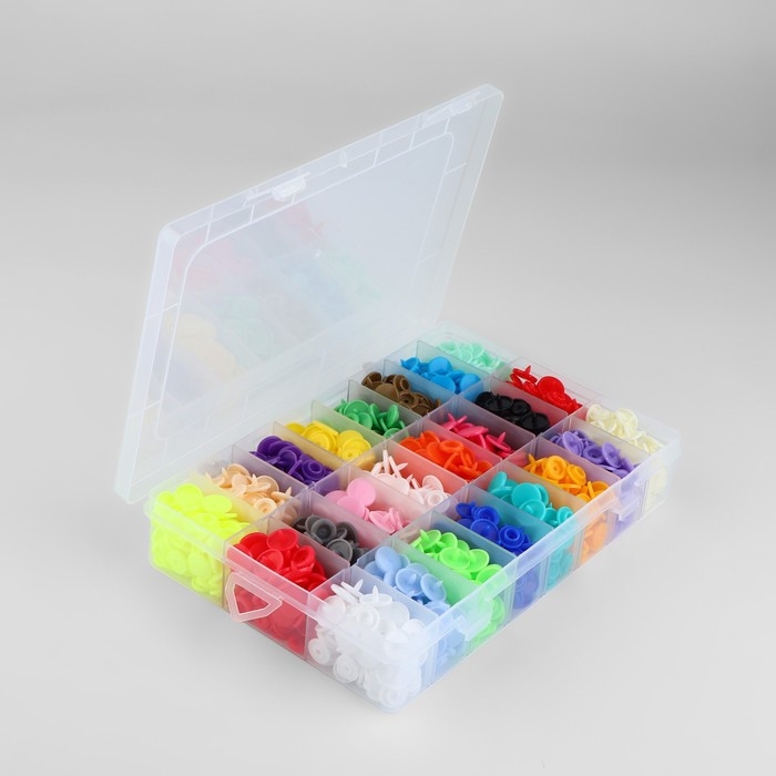 Кнопки пластиковые, d = 12 мм, 360 шт, в органайзере, цвет разноцветный