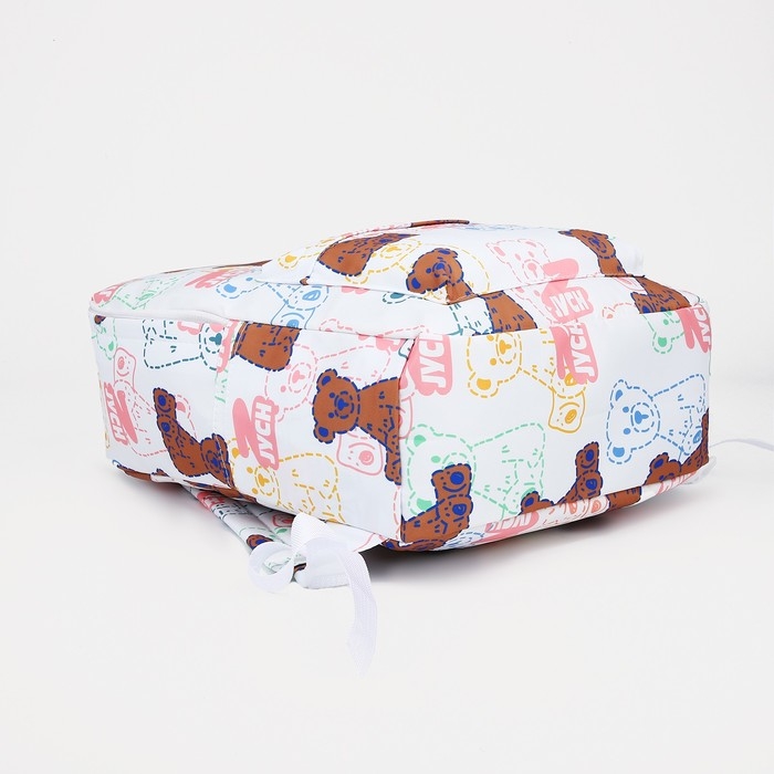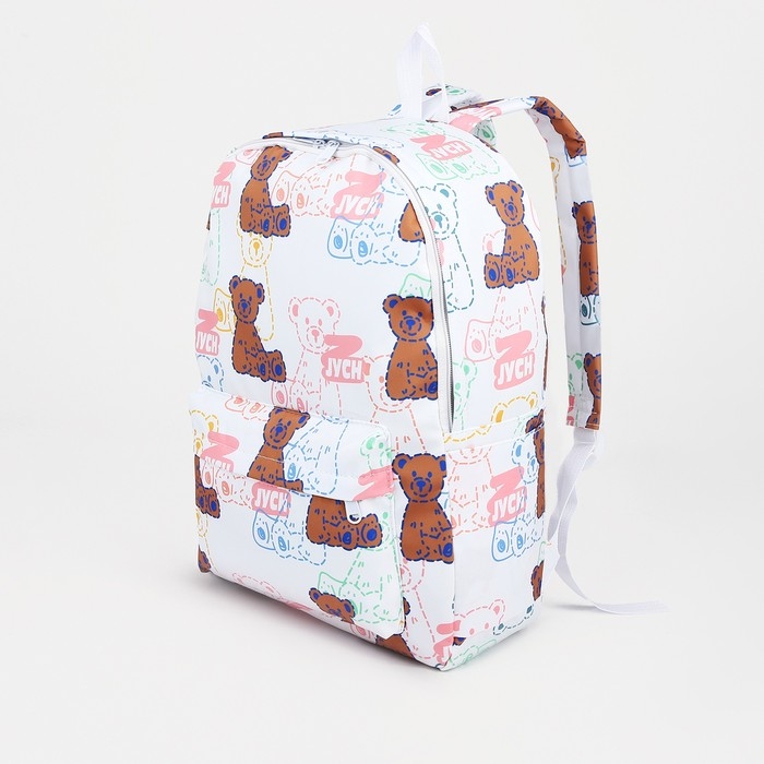Рюкзак школьный на молнии из текстиля, наружный карман, цвет белый/розовый
