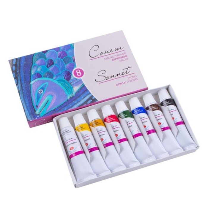 Краска акриловая в тубе, набор 8 цветов х 10 мл, ЗХК "Сонет", художественная, 2841096