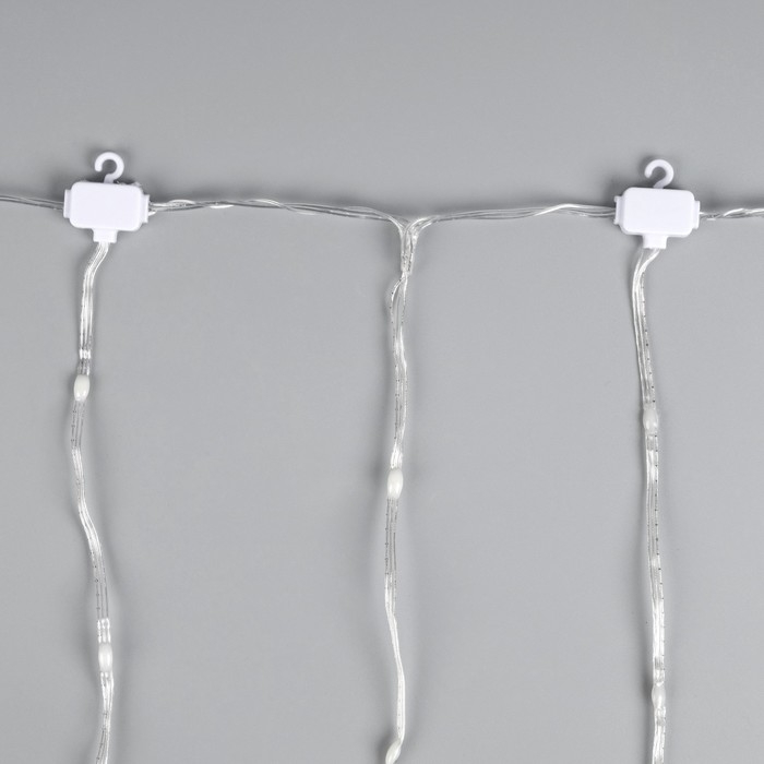 Гирлянда «Занавес» 2.5 × 0.65 м с насадками «Капли», IP20, прозрачная нить, 50 LED, свечение тёплое белое, 8 режимов, 220 В