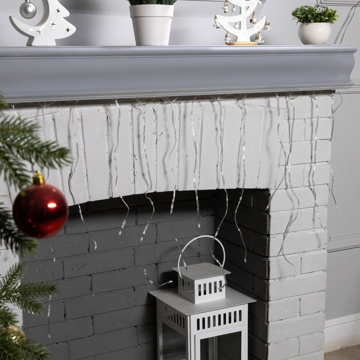 Гирлянда «Занавес» 2.5 × 0.65 м с насадками «Капли», IP20, прозрачная нить, 50 LED, свечение тёплое белое, 8 режимов, 220 В