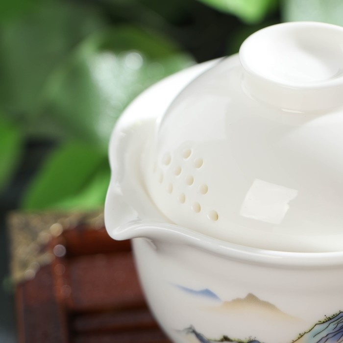 Набор упакован в компактный и удобный кейс, он станет чудесным подарком друзьям и коллегам. Изящное сочетание знаковых цветов выделяет набор чайный керамический «Восточная мудрость», 4 предмета: 3 пиалы 40 мл, гайвань 240 мл, цвет белый из богатого ассортимента подобных комплектов.