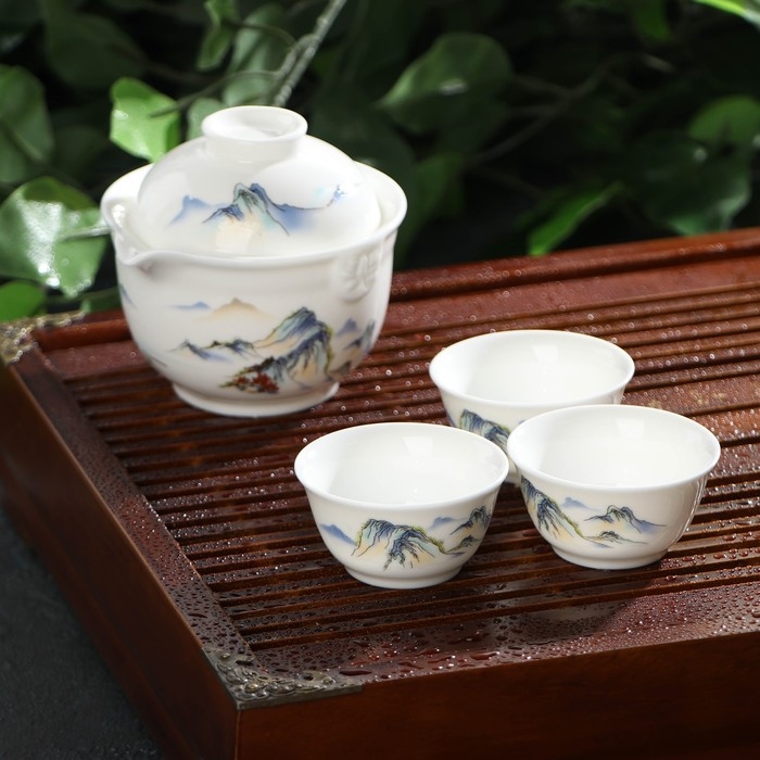 Набор чайный керамический «Восточная мудрость», 4 предмета: 3 пиалы 40 мл, гайвань 240 мл, цвет белый включает изделия из качественной керамики оригинальной формы, каждое из которых украшено в технике деколь, в восточной манере. Объёмы: