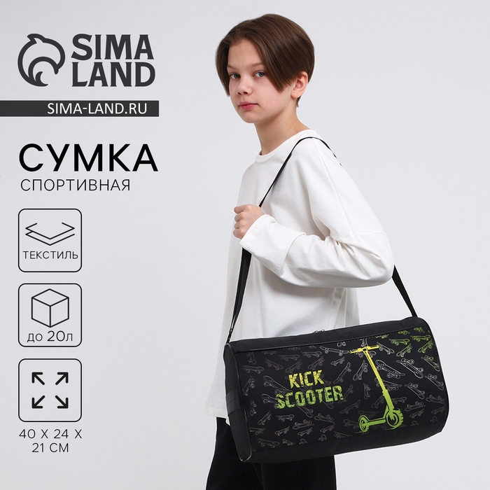 Сумка детская спортивная для мальчика «Самокат», 40х21х24см, цвет чёрный