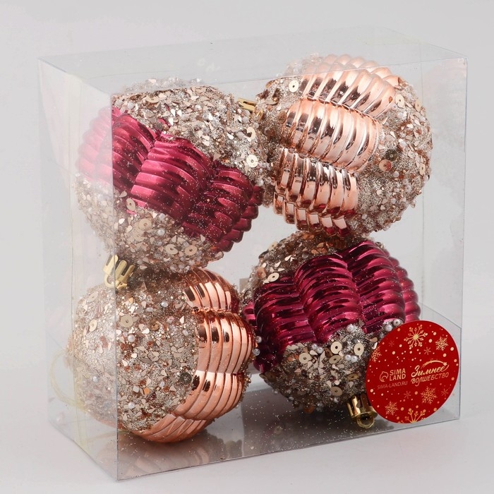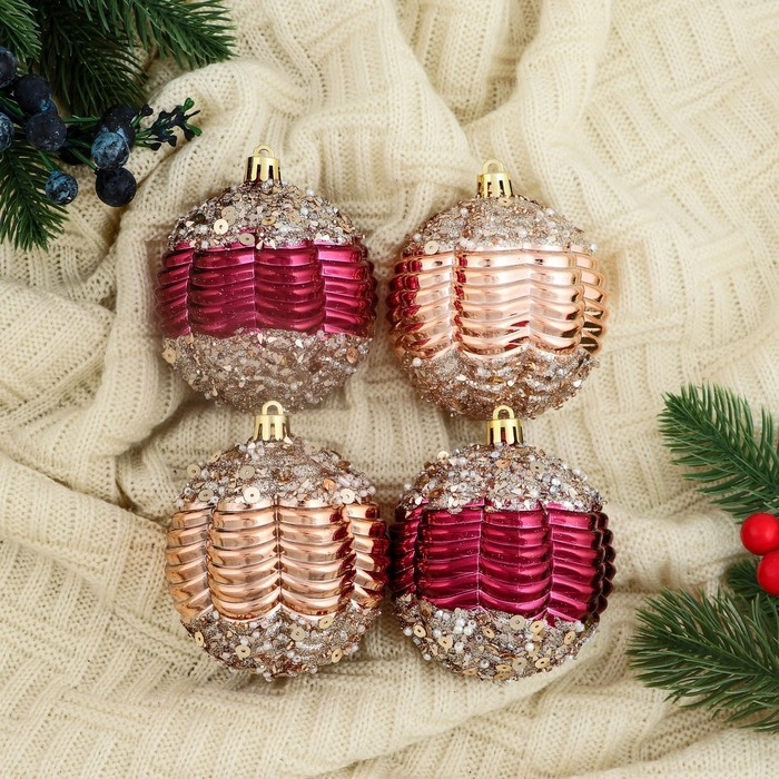 Набор шаров пластик d-8 см, 4 шт "Кэли" бордовый золото