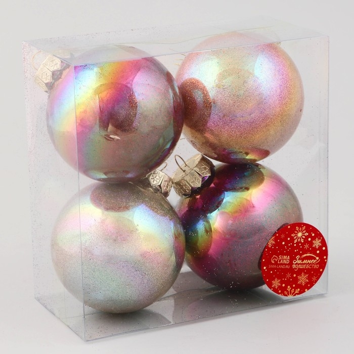 Набор шаров пластик d-8 см, 4 шт "Мэдисон" блеск микс
