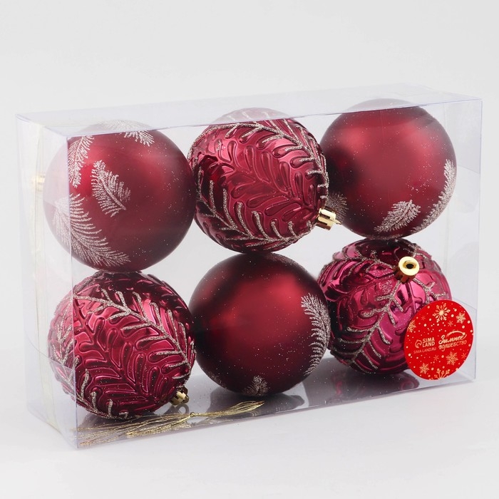 Набор шаров пластик d-8 см, 6 шт "Сказочные узоры перья, красный