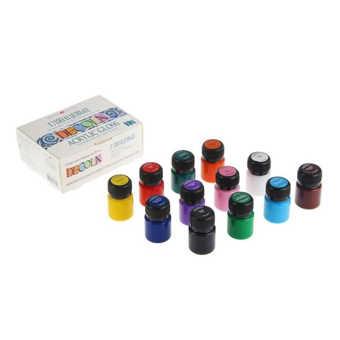 Краска акриловая, набор 12 цветов х 20 мл, ЗХК Decola, глянцевые, 2941116