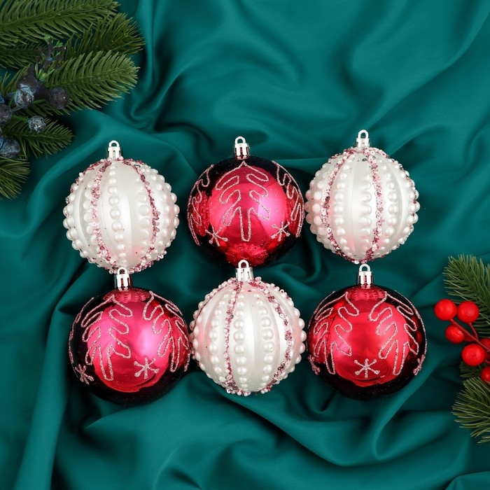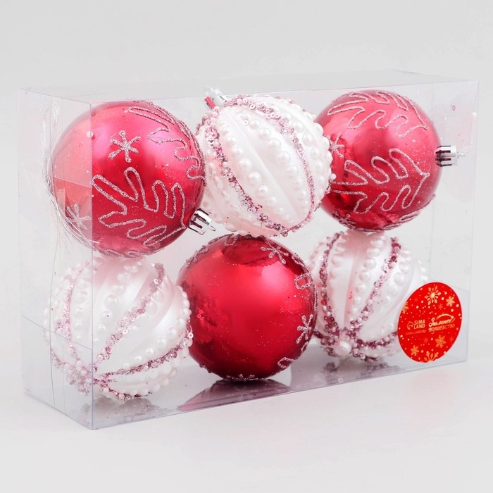 Набор шаров пластик d-8 см, 6 шт "Ночка" ёлочки, красный белый