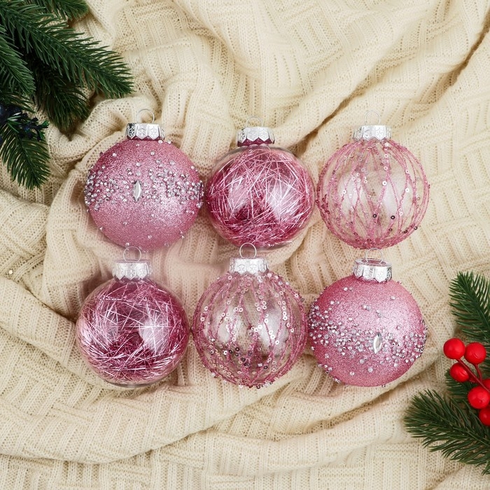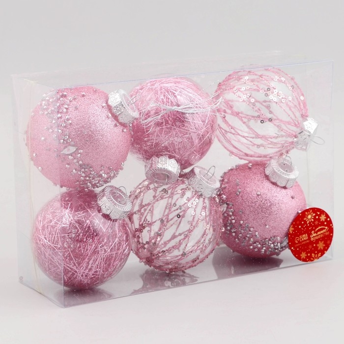 Набор шаров пластик d-8 см, 6 шт "Жаклин" розовый