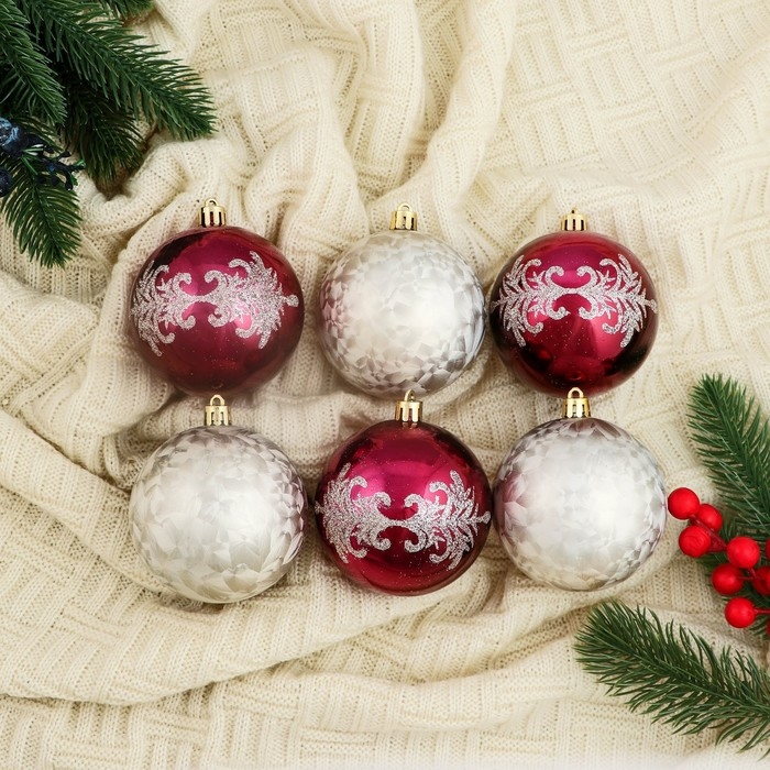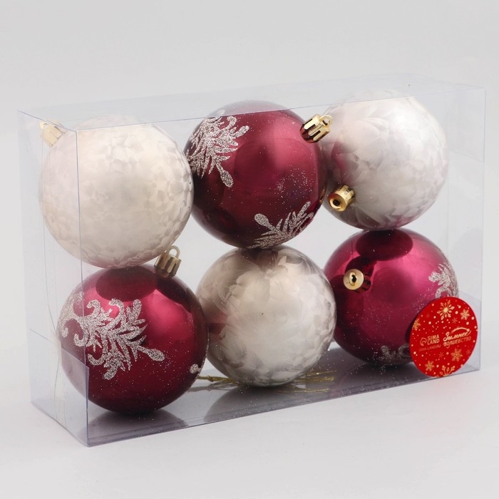 Набор шаров пластик d-8 см, 6 шт "Ночка" элит узор, бордовый золото