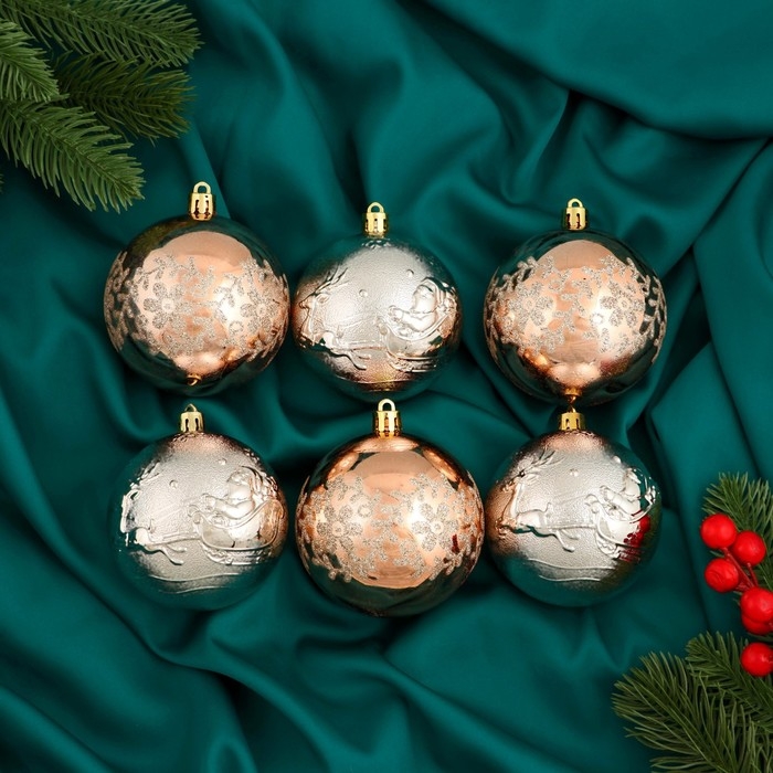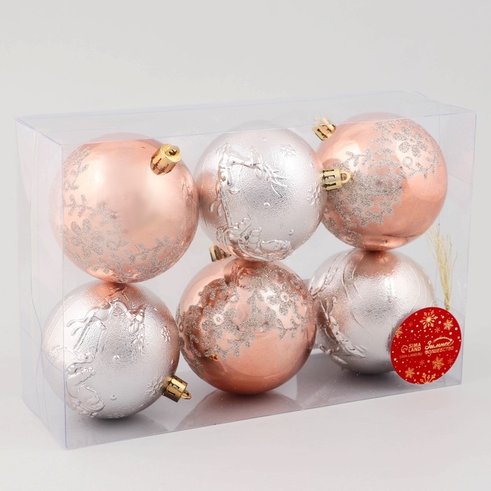 Набор шаров пластик d-8 см, 6 шт "Ночка" цветы люкс, золото