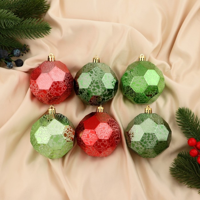 Набор шаров пластик d-8 см, 6 шт "Шерил" зелёный красный