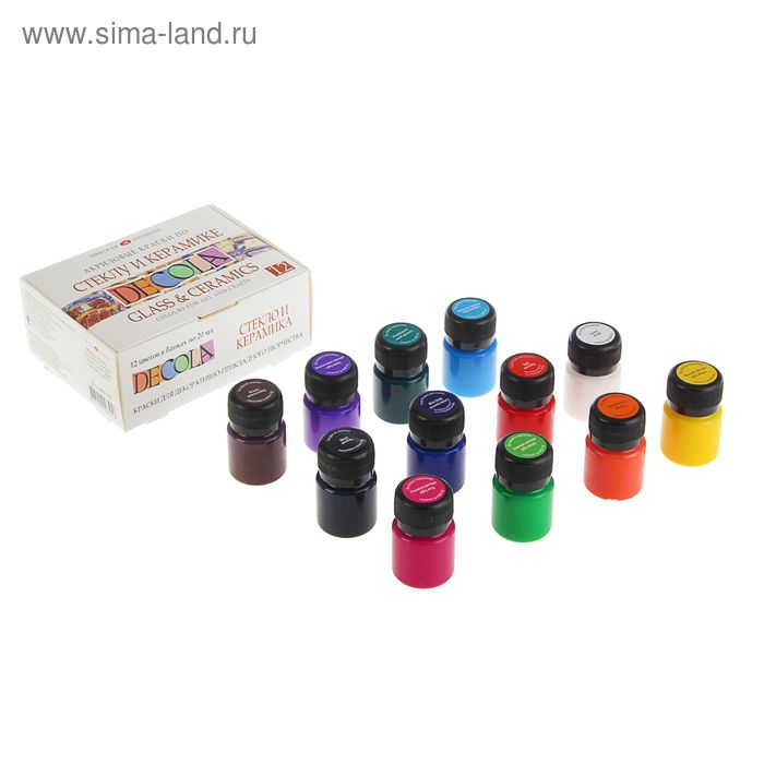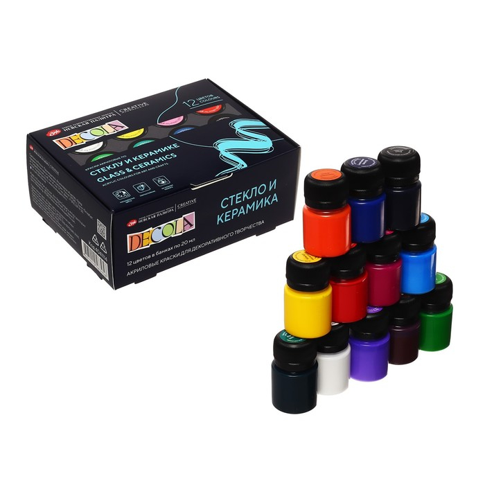 Набор красок по стеклу и керамике Decola, 12 цветов х 20 мл, 4041114