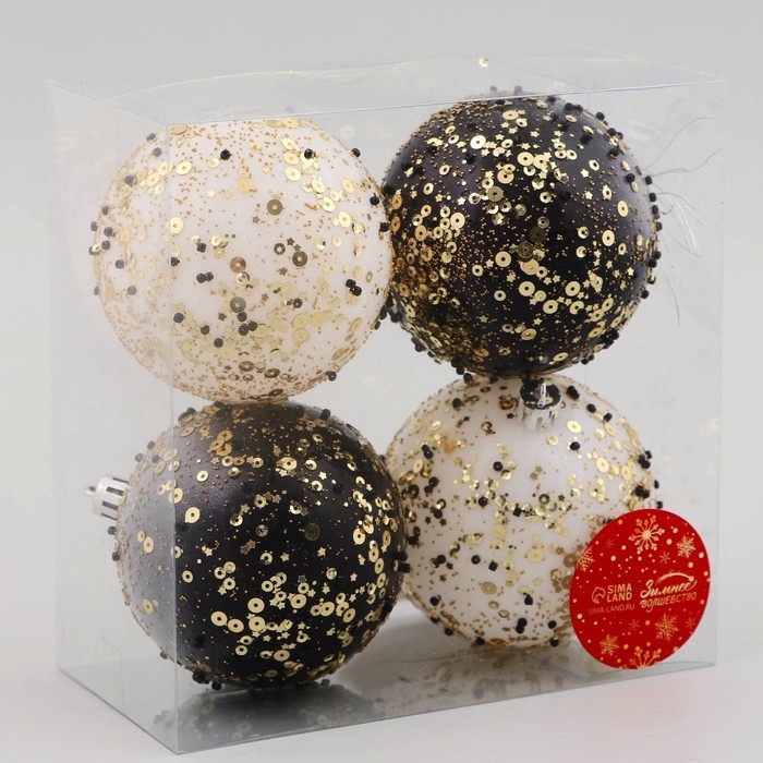 Набор шаров пластик d-8 см, 4 шт "Мюриель" блеск, чёрный белый