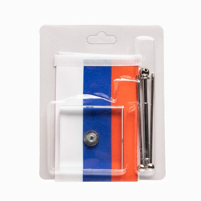 Флаг России настольный, на подставке, с двумя флажками 8 х 11 см, квадрат, 16.5 х 12 см