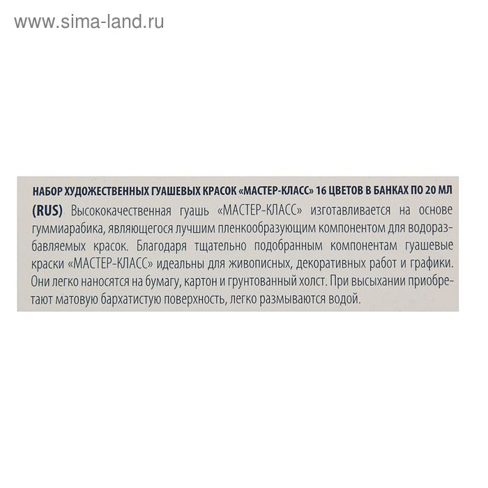 Гуашь художественная в банке 20 мл, ЗХК "Мастер класс", набор, 16 цветов (1741092)
