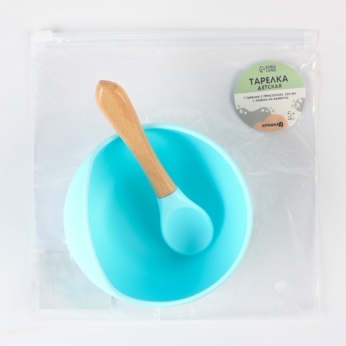Тарелка детская на присоске, ложка, Крошка Я, цвет голубой