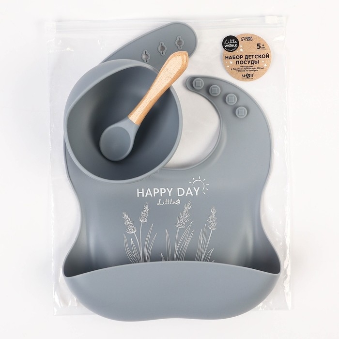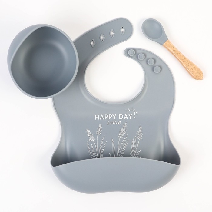 Набор для кормления: нагрудник, тарелка на присоске, ложка, M&B, серый