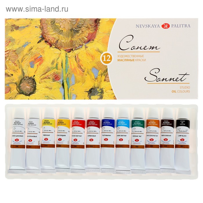 Краска масляная художественная, набор 12 цветов х 10 мл, ЗХК "Сонет", 2641099
