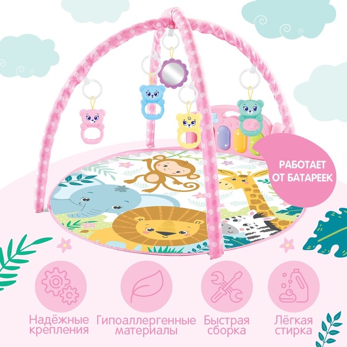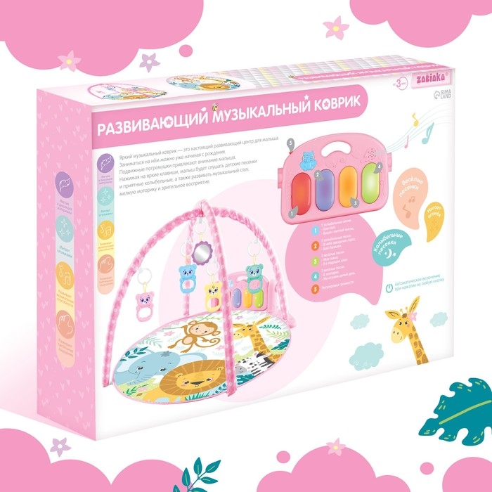 Музыкальный развивающий коврик с пианино, русская озвучка, свет, цвет розовый
