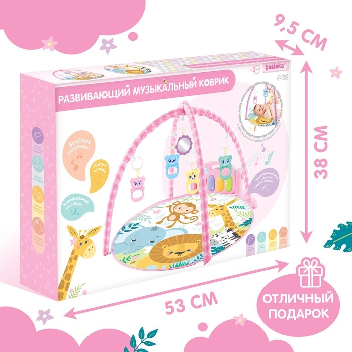 Яркий музыкальный коврик — это настоящий развивающий центр для малыша. Заниматься на нём можно уже начиная с рождения. С таким ковриком кроха быстрее научится держать головку и управлять телом, фокусировать взгляд на движущемся предмете и находить источник звука, а ещё потренирует тактильные навыки и мелкую моторику.