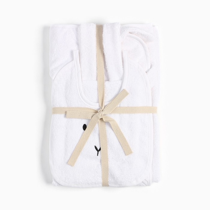 Набор Крошка Я (полотенце-уголок, рукавица, нагрудник), белый, 100% хл, 360 гр/м2