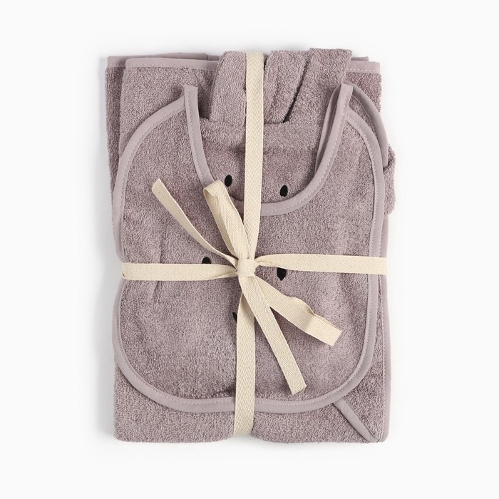 Набор Крошка Я (полотенце-уголок, рукавица, нагрудник), розовый, 100% хл, 360 гр/м2