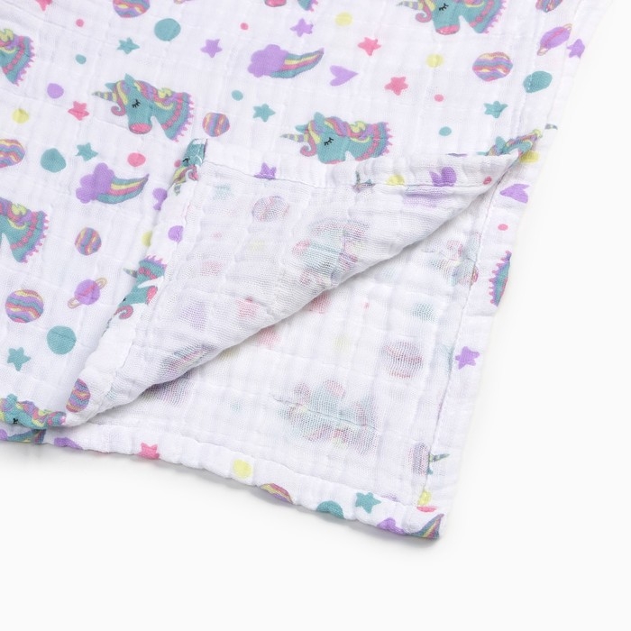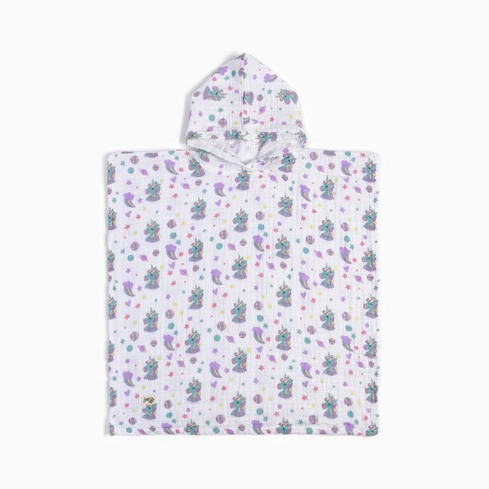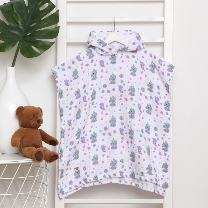Пончо муслиновое детское LoveLife "Единороги" 100% хл, 4-сл, 235гр/м2