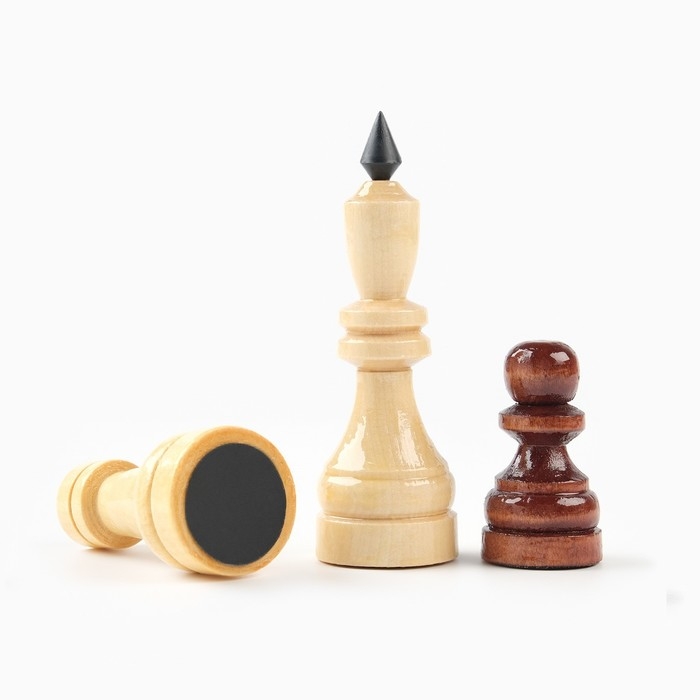 Шахматы - классическая настольная игра, которая способствует развитию фантазии и концентрации внимания, воспитанию характера и воли, терпения, а также приучает мыслить логически. Эти гроссмейстерские деревянные шахматы выполнены из качественных пиломатериалов лиственных пород. Шахматные фигуры (темно-коричневого и желтого цвета) изготовлены из сосны и покрыты лаком. Основание фигур из кожзаменителя чёрного цвета. Данное основание придает фигуре более устойчивое положение на доске и устраняет появление царапин на шахматном поле. Играть в шахматы можно где угодно: в школе, в компании, с друзьями, коллегами, родителями, детьми.