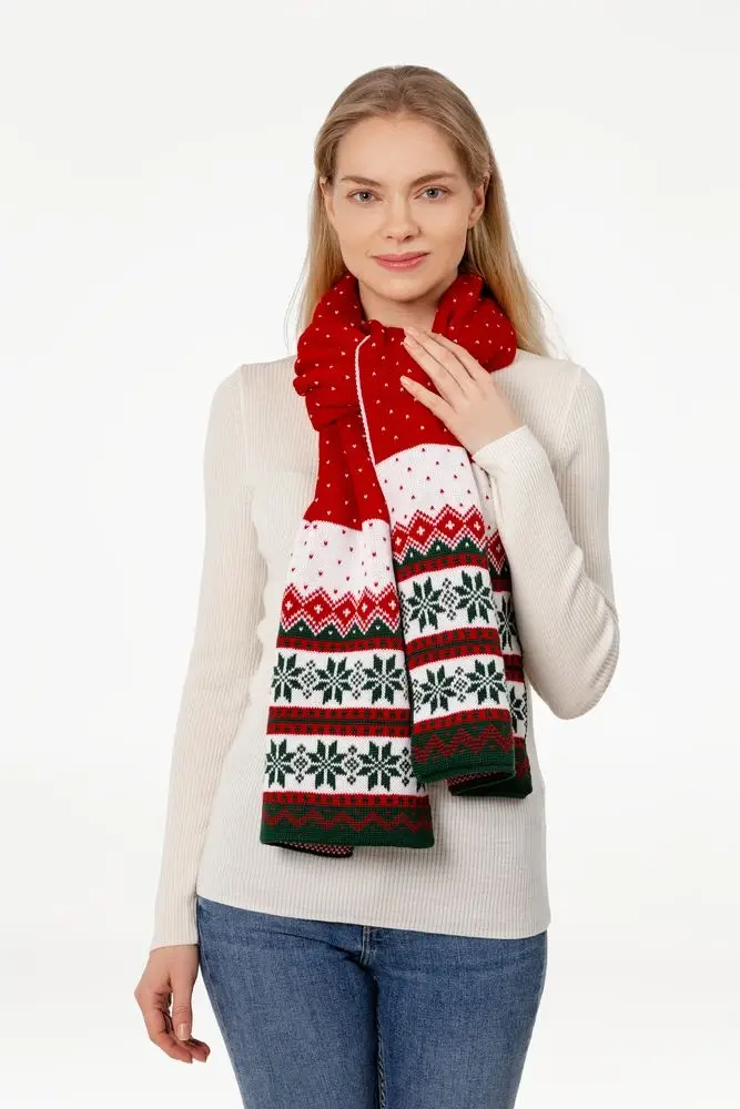 Шарф Happy View — это настроение волшебных рождественских фильмов, переданное через традиционный орнамент и классическое сочетание цветов.