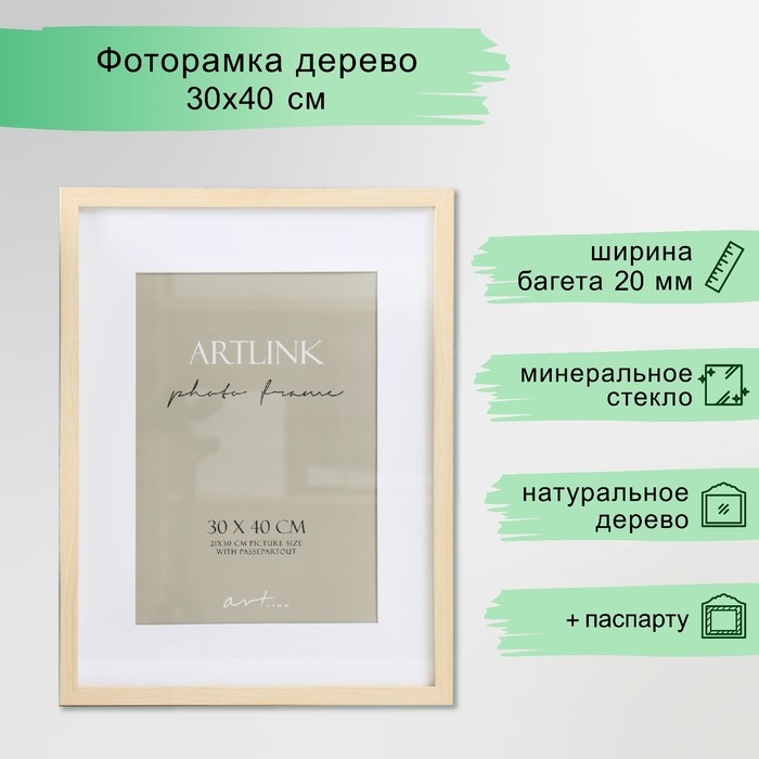 Фоторамка МДФ "Ellis" 30х40 см, с паспарту, натуральный 76717