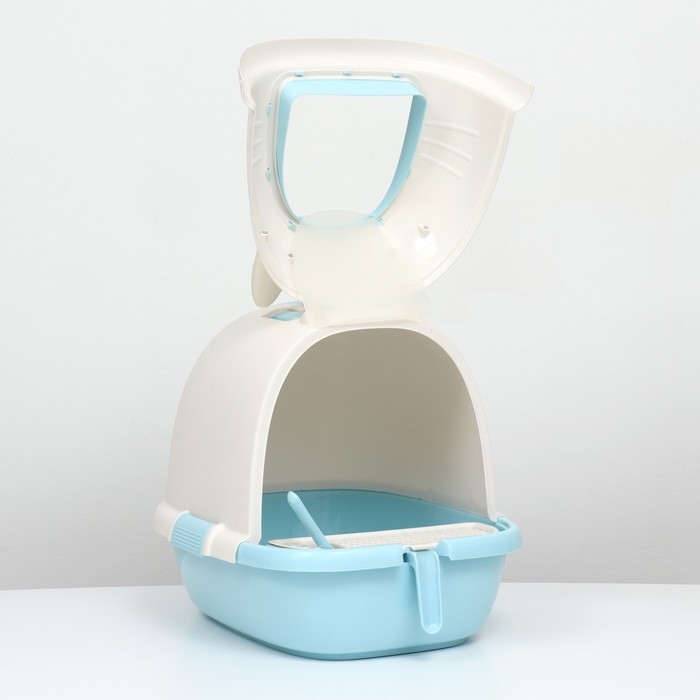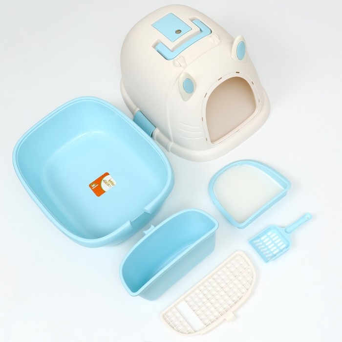 • Высокие борты, стенки и закрытая конструкция лотка обеспечивают чистоту в доме, блокируют запахи, наполнитель не разлетается по сторонам.