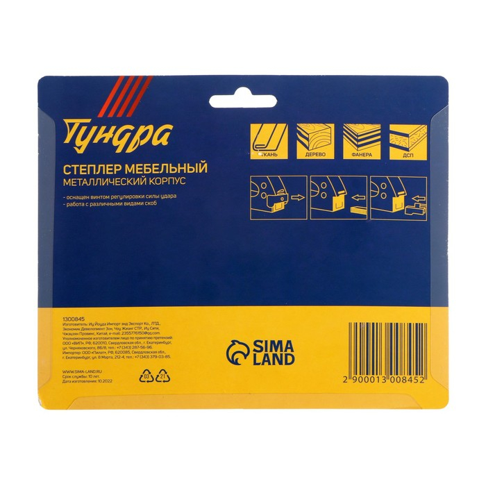 Степлер мебельный ТУНДРА, 3 в 1, металлический корпус, типы скоб 140/28/300, 4 - 14 мм