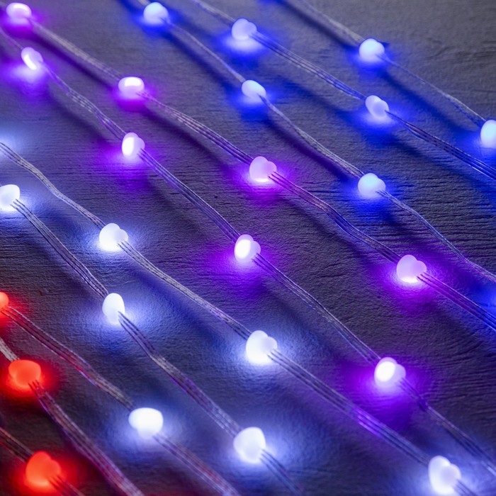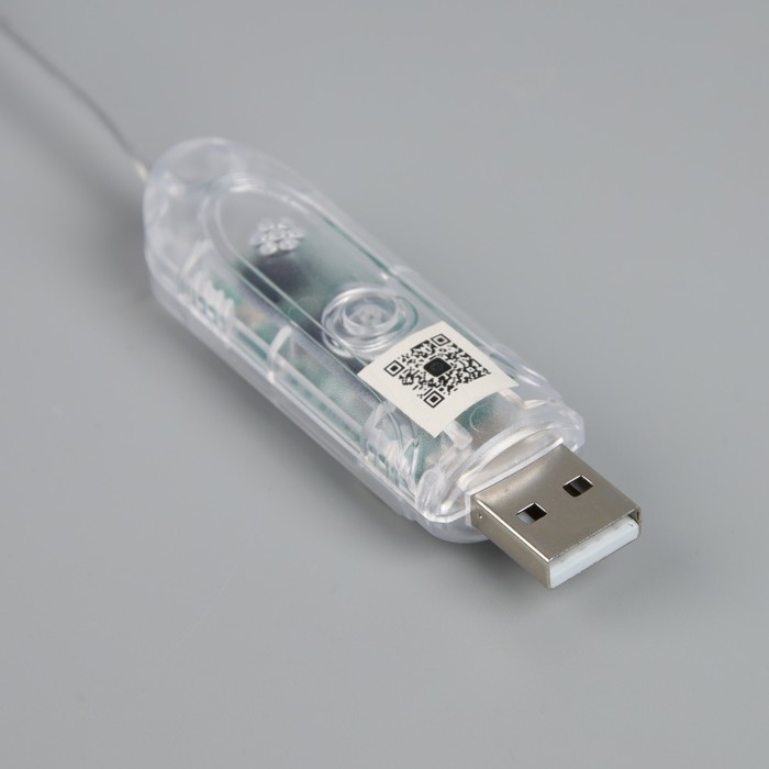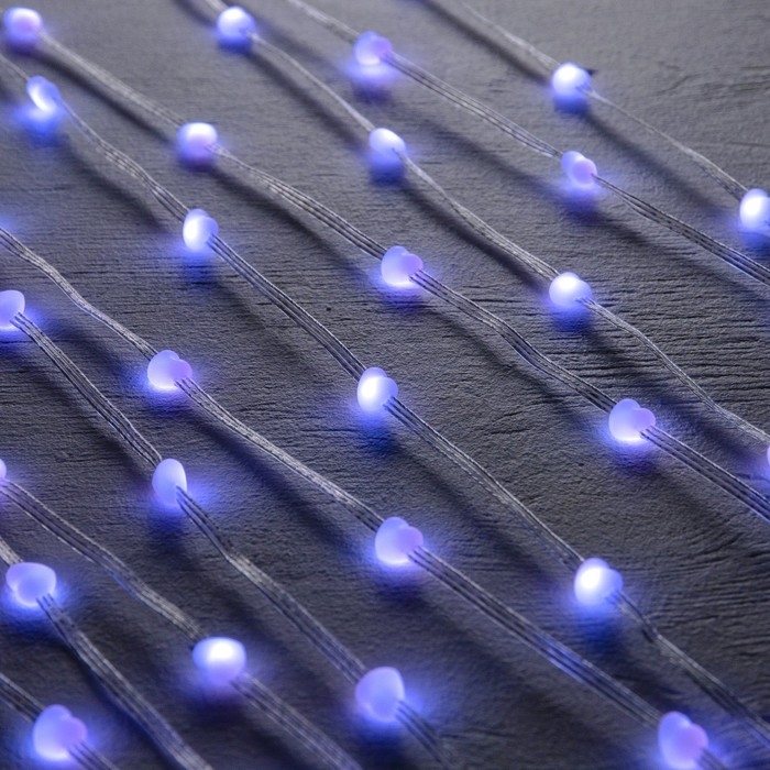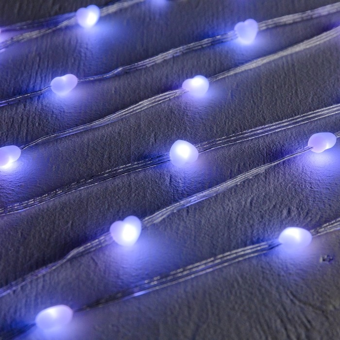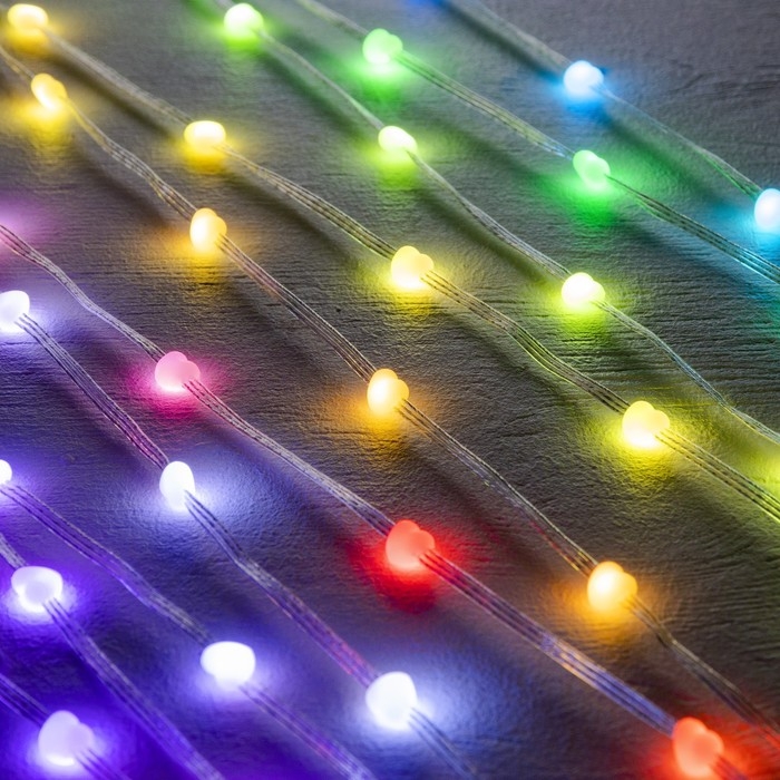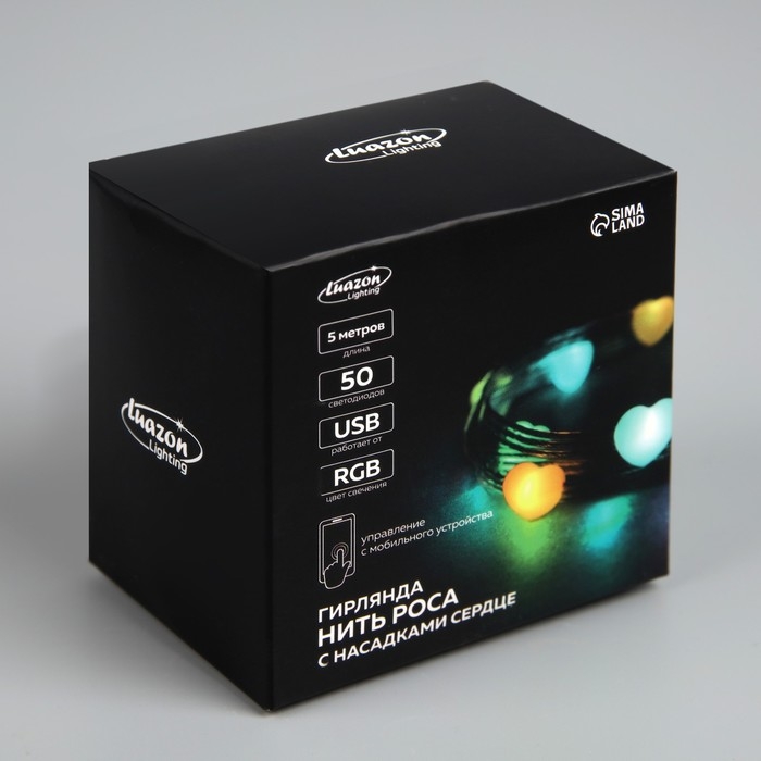 Умная гирлянда «Нить» 5 м роса с насадками «Сердечки», IP20, серебристая нить, 50 LED, пульт ДУ, приложение, свечение RGB, USB
