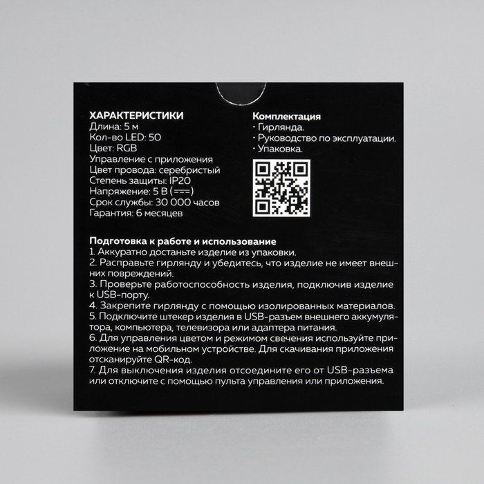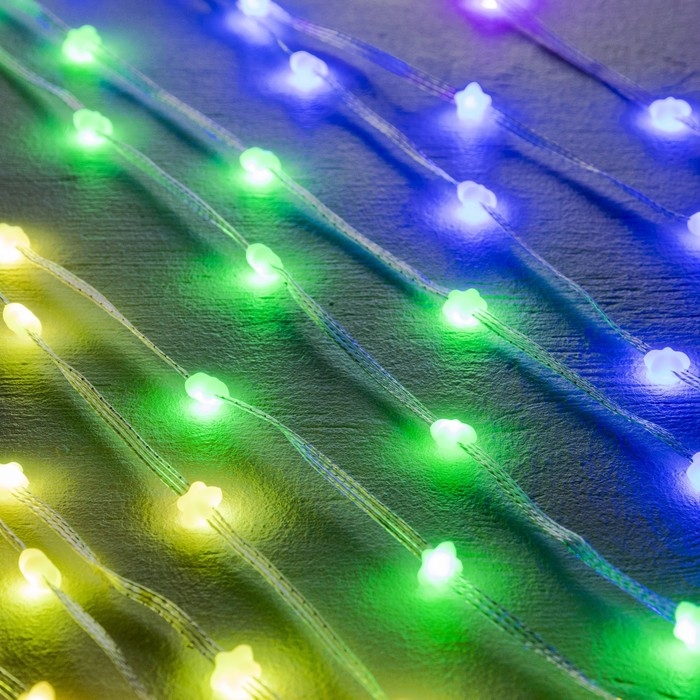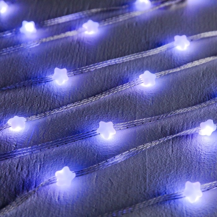 Умная гирлянда «Нить» 5 м роса с насадками «Звёздочки», IP20, серебристая нить, 50 LED, пульт ДУ, приложение, свечение RGB, USB