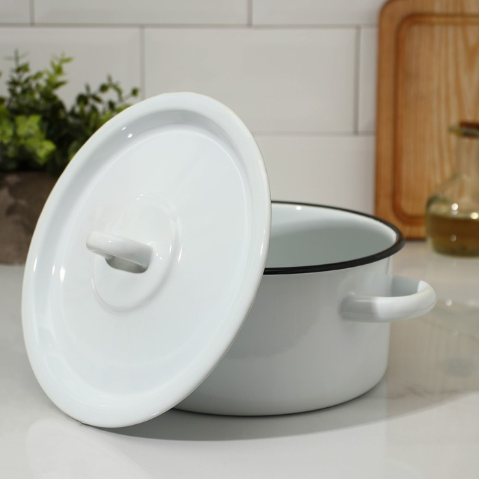 Кастрюля цилиндрическая эмалированная, 2 л, цвет белый