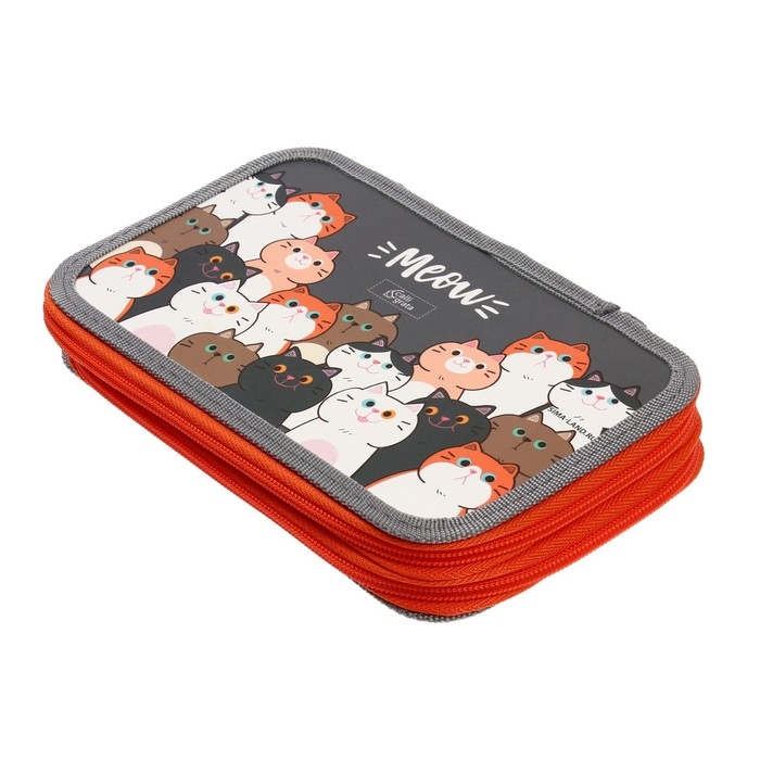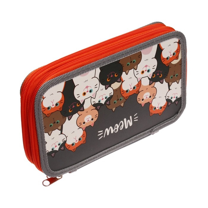 Пенал 2 секции, 125 х 205 х 40 мм, Calligrata 30П26/2 "Коты", ламинированный картон