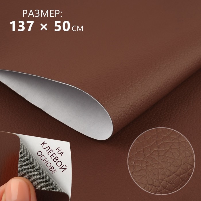 Искусственная кожа, с клеевой основой, 137 × 50 см, 0,5 мм, цвет коричневый