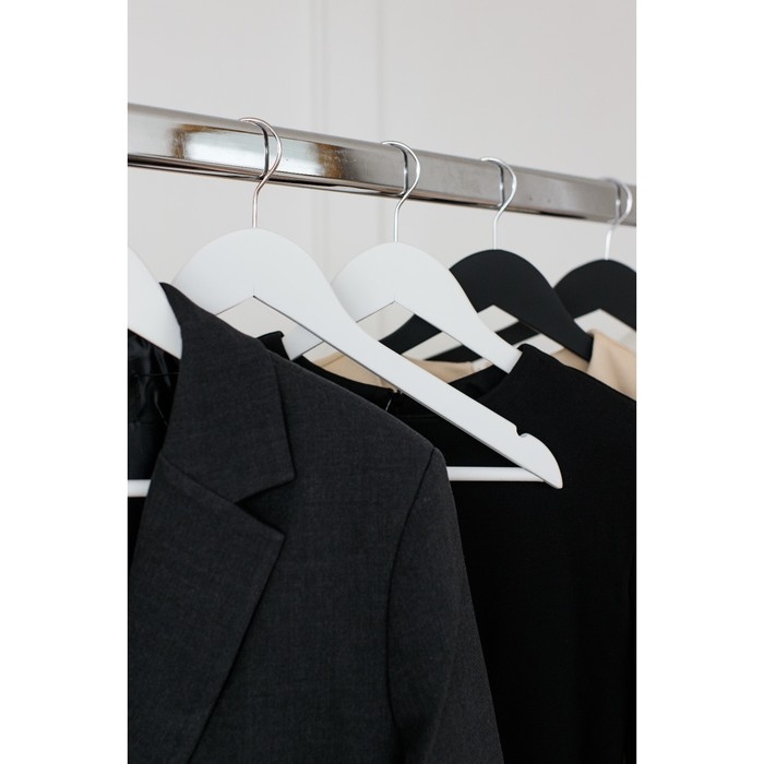 Плечики - вешалки для одежды LaDо́m Soft-Touch, 44,5×23 см, 3 шт, деревянные, с перекладиной, широкие плечики, цвет белый