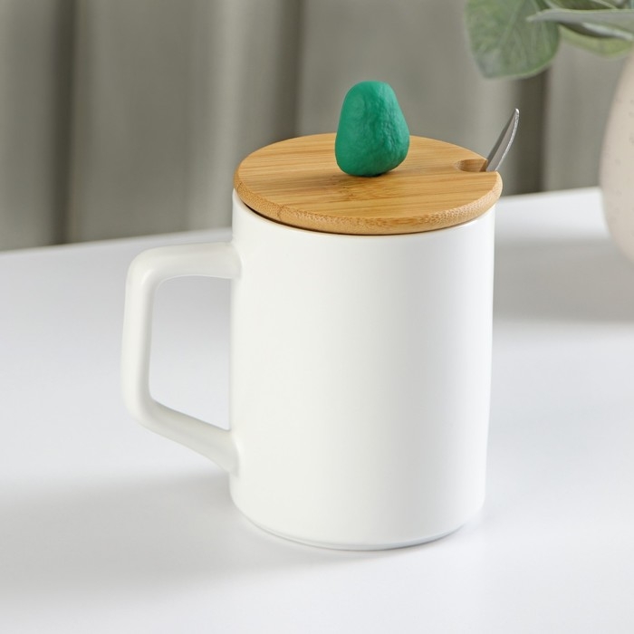Кружка керамическая с крышкой и ложкой Avocado, 360 мл