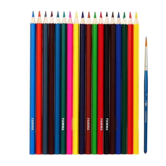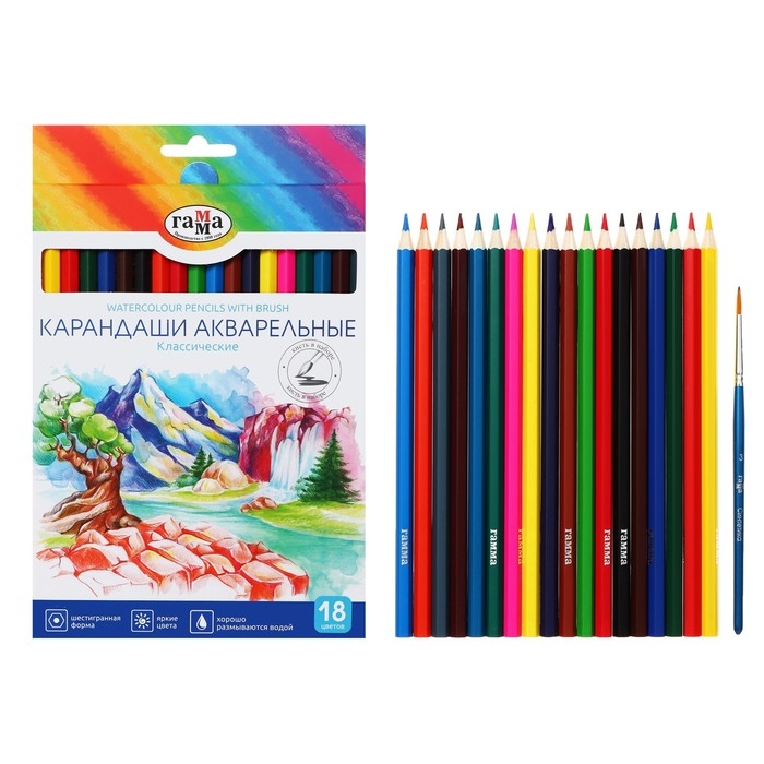 Карандаши акварельные 18цв Гамма "Классические", шестигран, с кистью, карт/уп, европодв