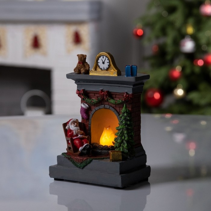 Светодиодная фигура «Камин» 13 × 9 × 6 см, полистоун, батарейки АААх2 (не в комплекте), свечение тёплое белое
