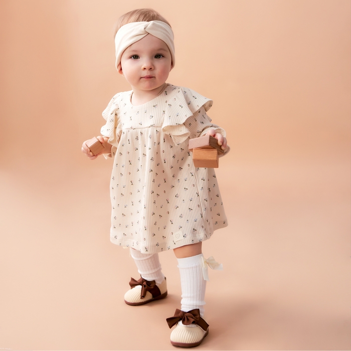 Платье с дл. рукавом Крошка Я Wildflowers, рост 68-74 см, бежевый